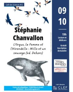 L’Orque, la Femme et l’Hirondelle : Mille et un sauvage est son premier essai édité, aux Éditions Dehors . Il peut se lire comme une enquête de terrain (en mer et sur terre) et une quête du sauvage (en France, au Canada, ou encore en Norvège). Pour Stéphanie Chanvallon, le sauvage est partout. Il traverse l’Histoire, les cultures et nos imaginaires. Nous avons besoin de nous lier et nous délier aux animaux sauvages.